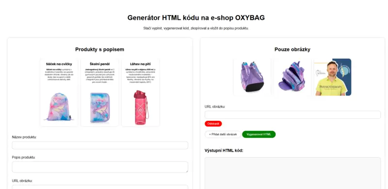 Stačí vyplnit, vygenerovat kód, zkopírovat a vložit do popisu produktu.